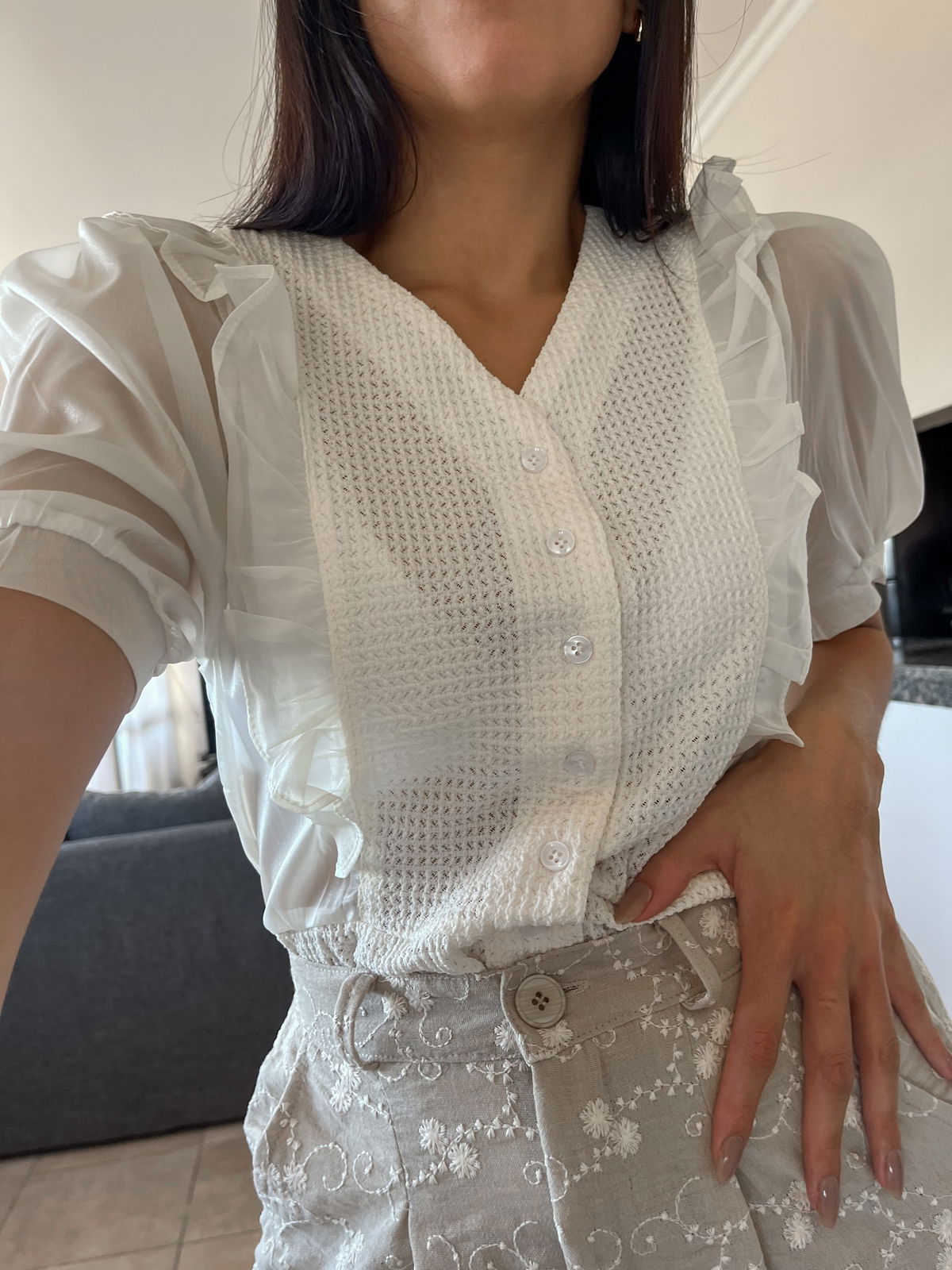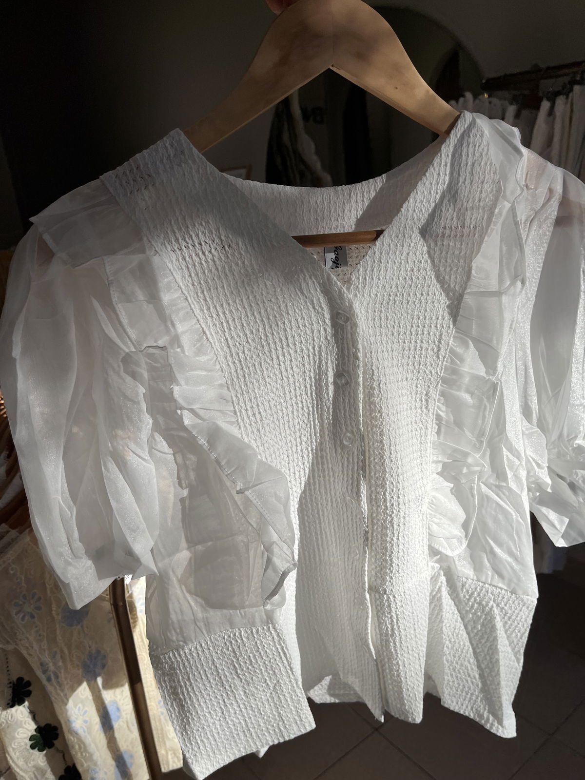 CAMISA MANGA CORTA ON CROCHET Y GASA MANGA PRINCESA.