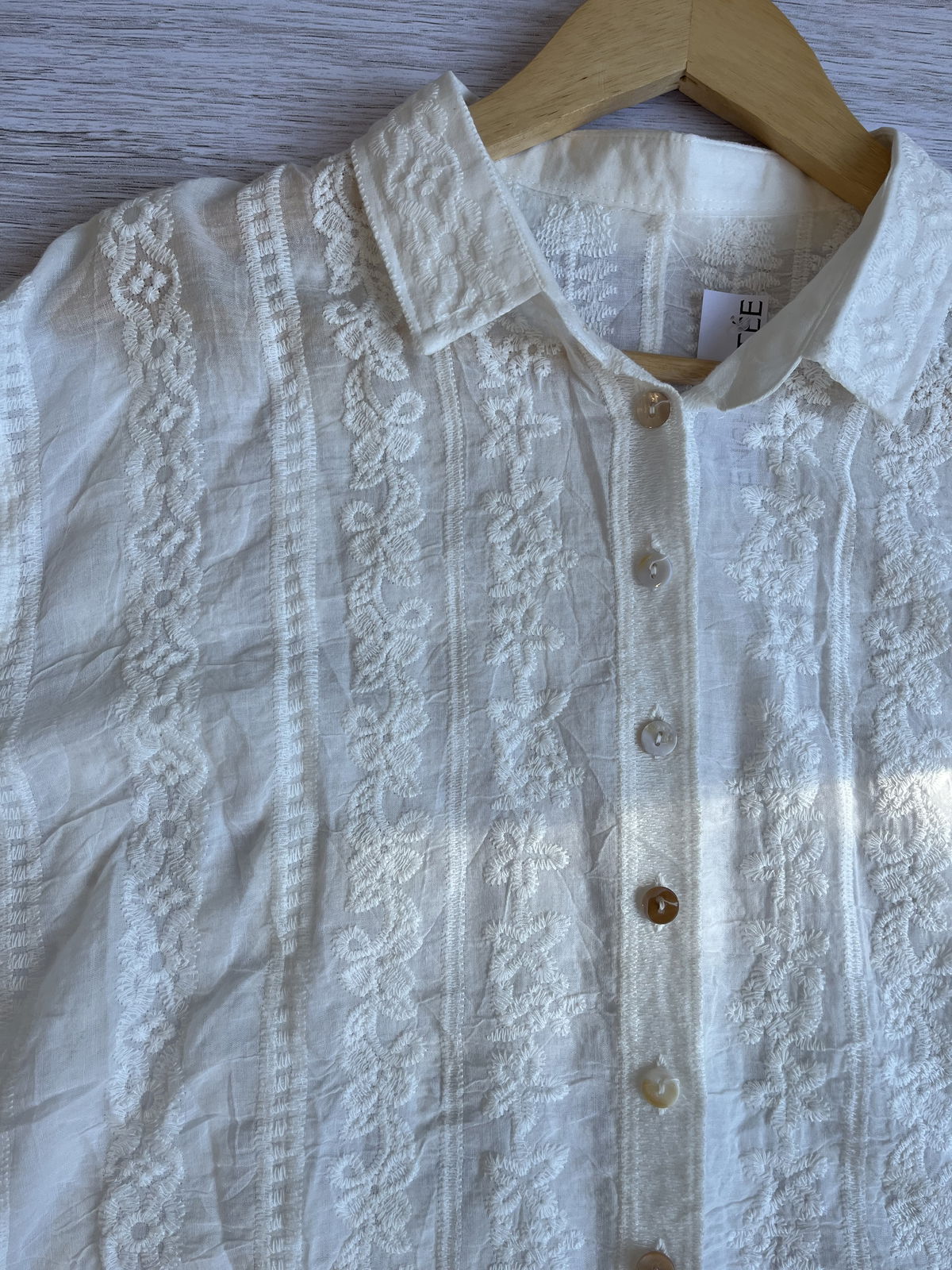 Camisa manga larga bordada oversize. Abarca hasta talle XL