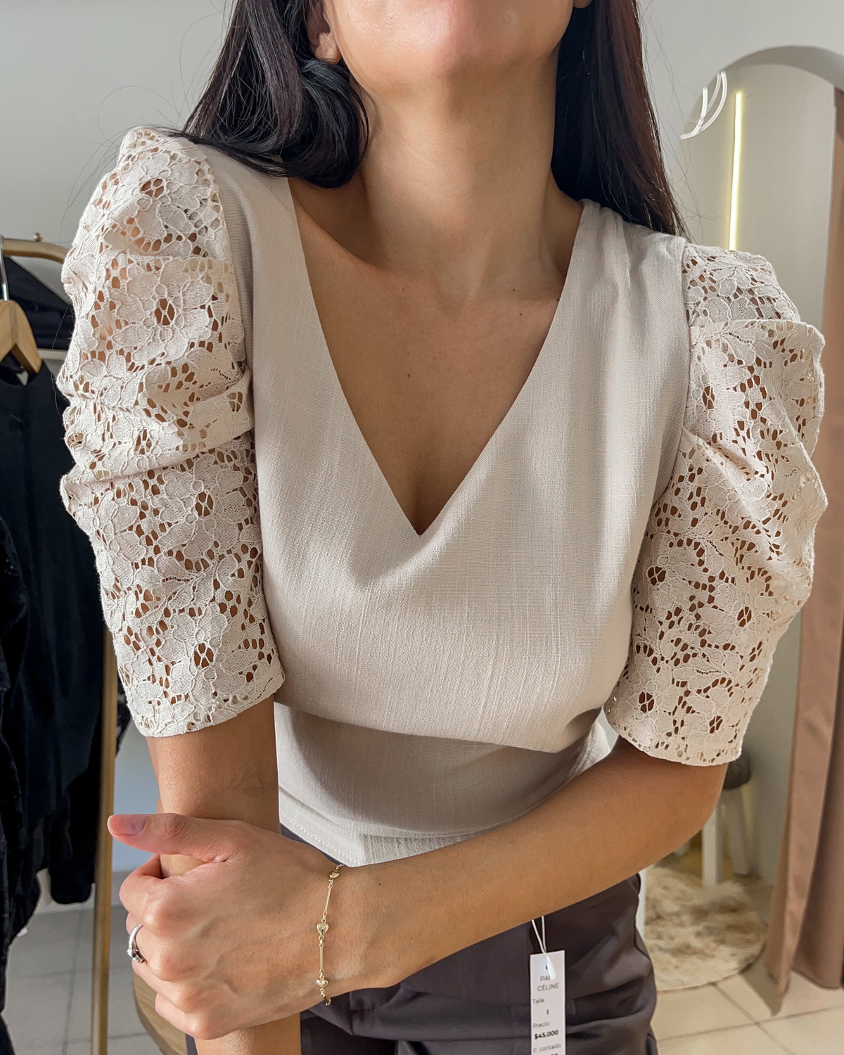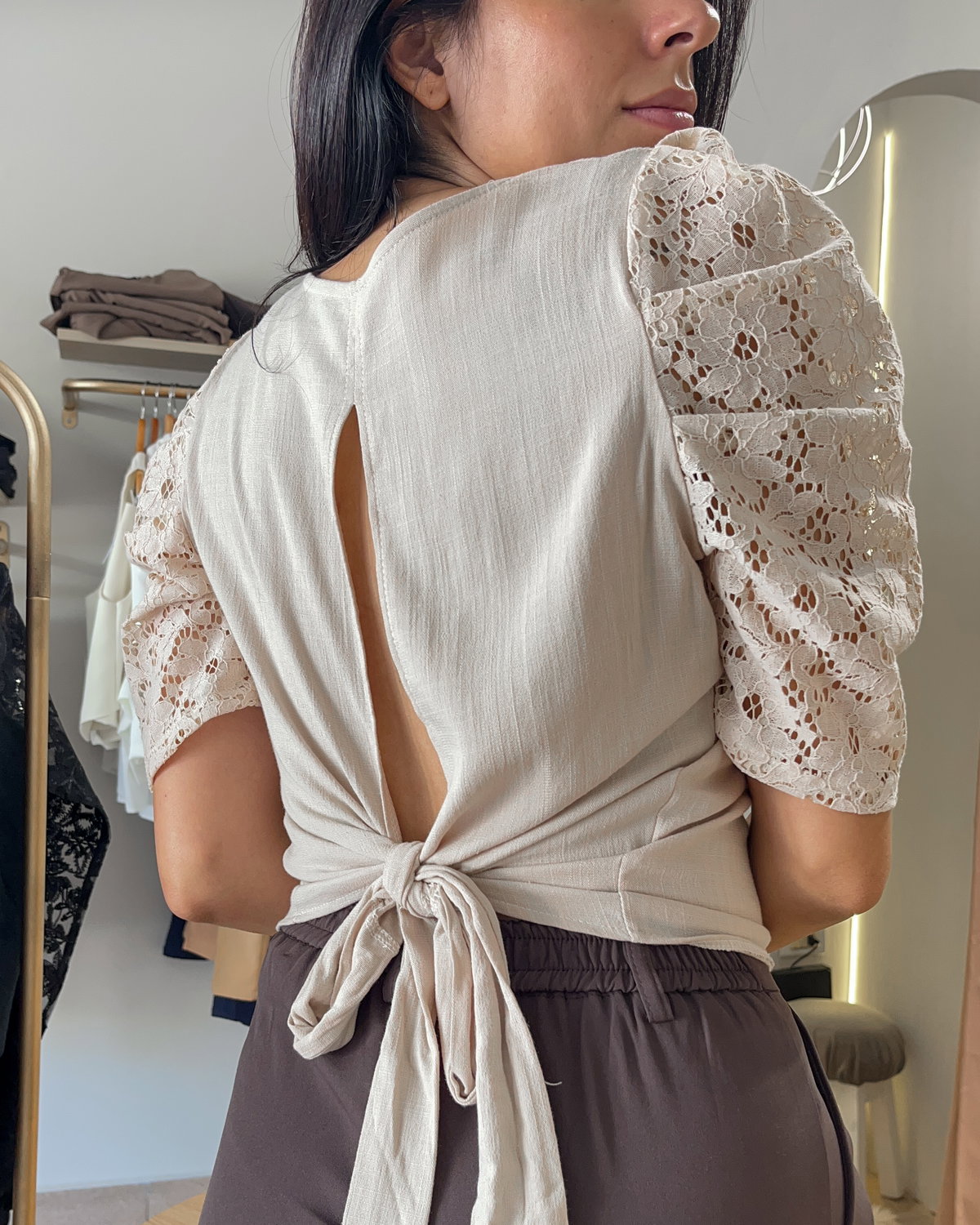 Tiene escote en V y lazos en espalda inferior para regular, (aflojar o ajustar a gusto)