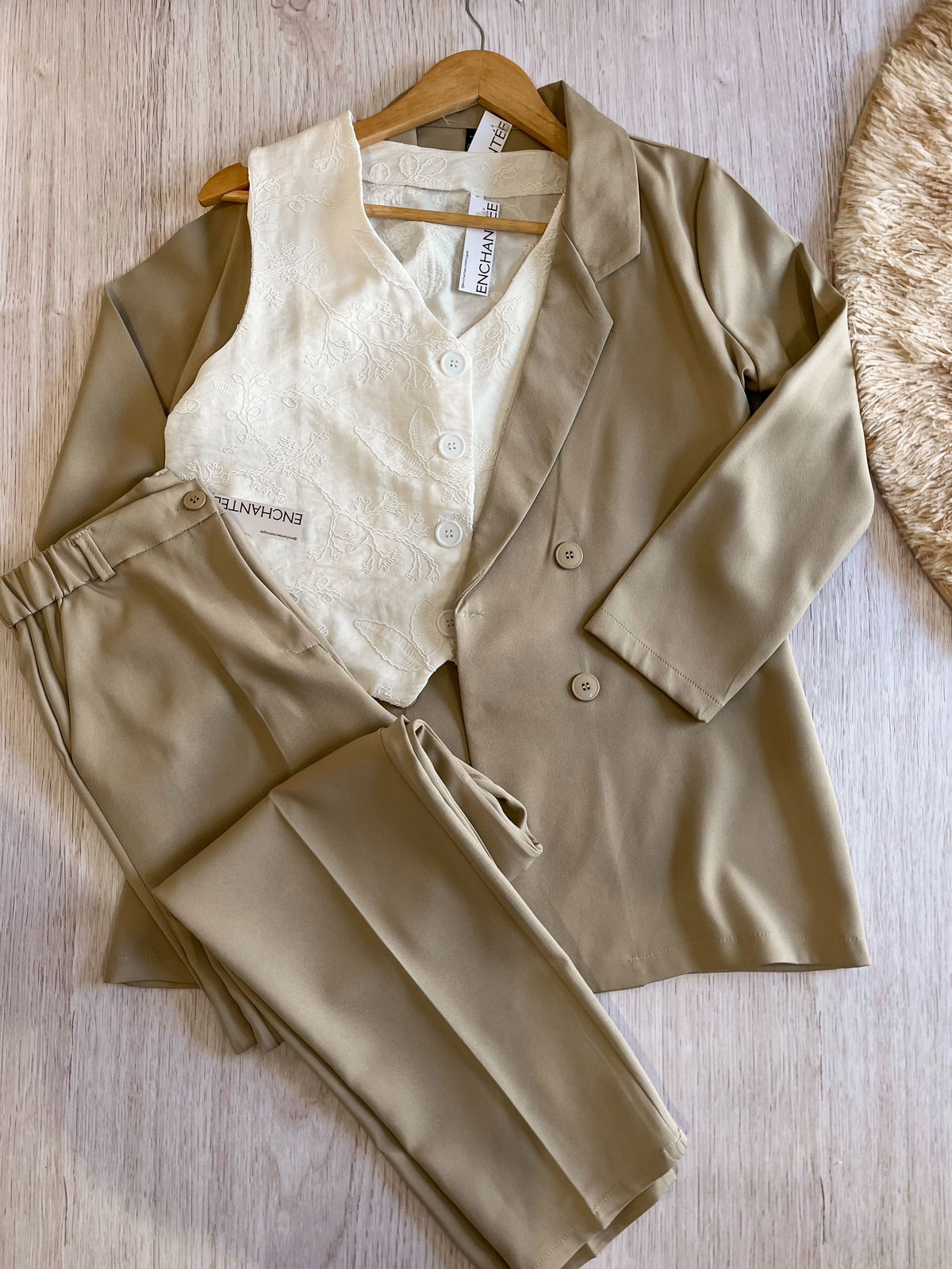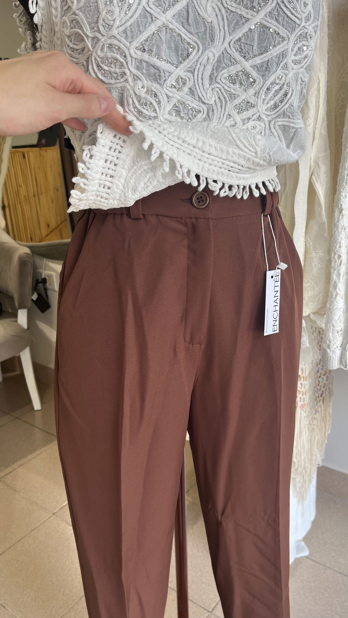 Bolsillos delanteros, cierrre, botón y pasacinto.