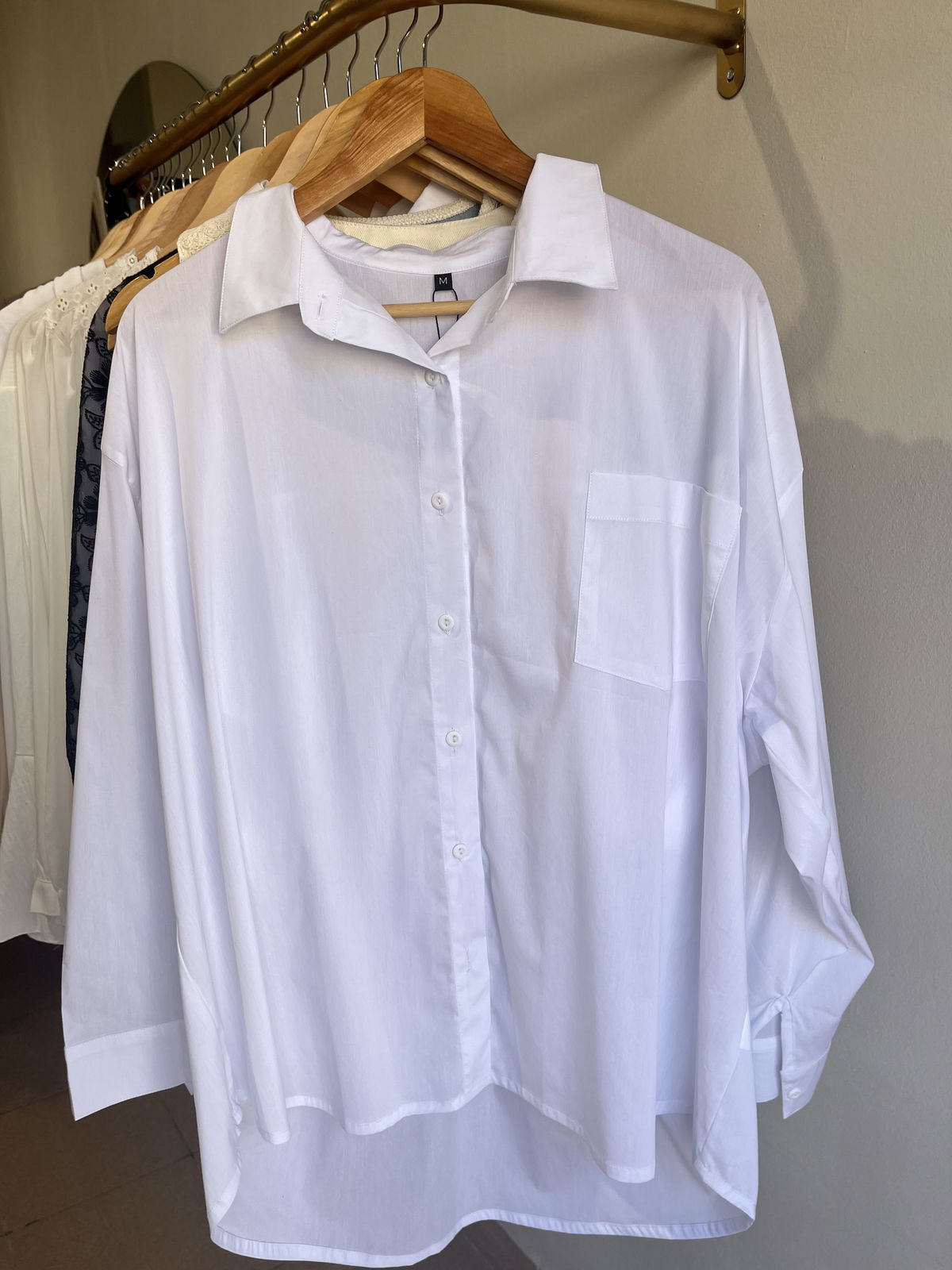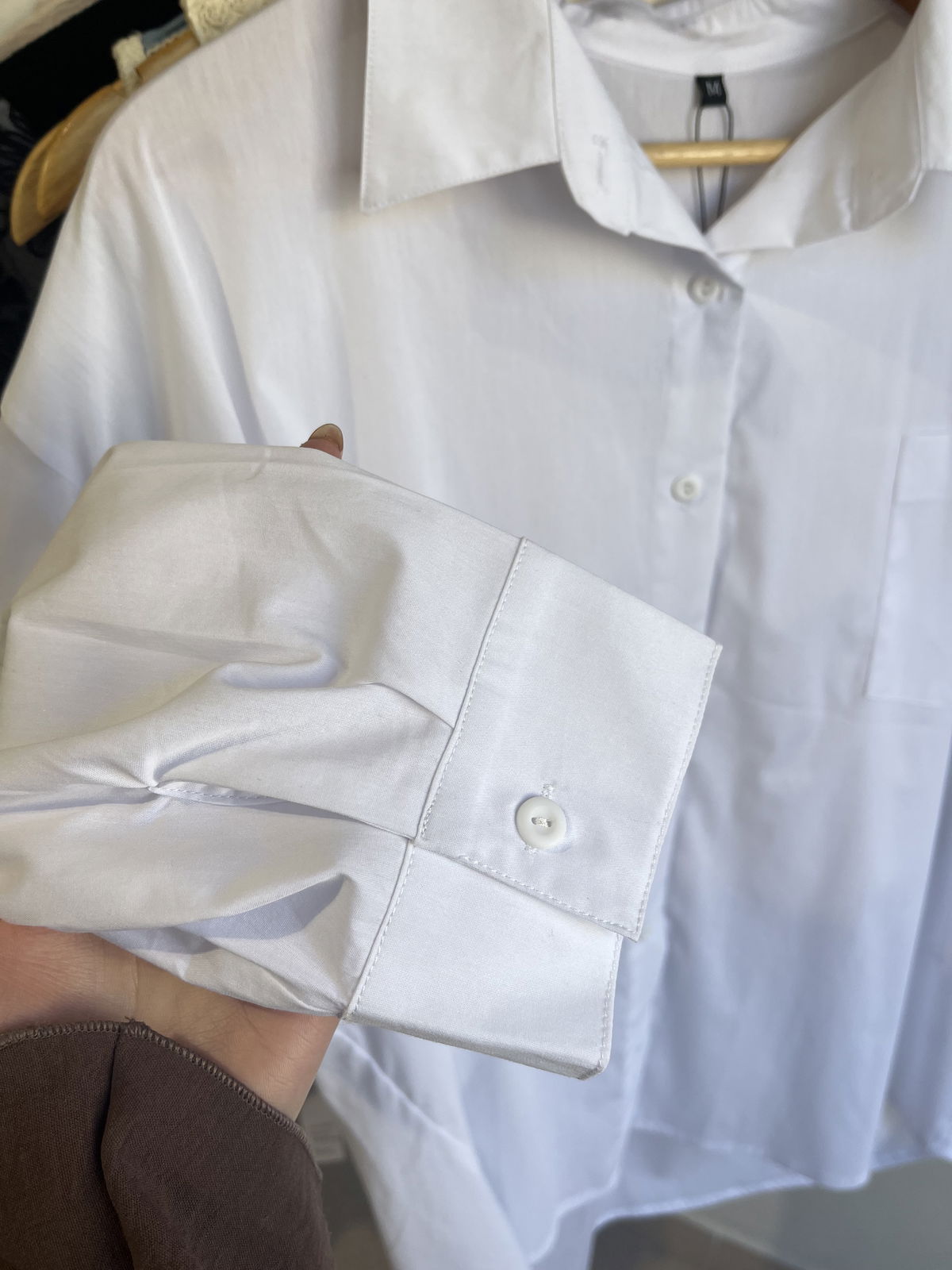 Camisa de Poplin con lycra. Con cuello solapa y manga larga. Botones frontales delantero y en el puño. Bolsillo de plastrón en delantero.