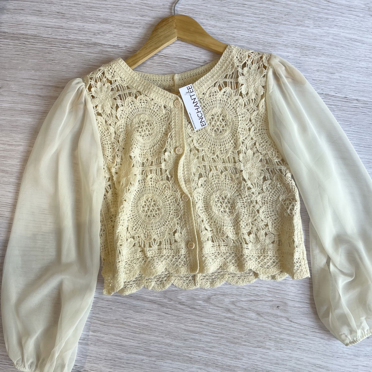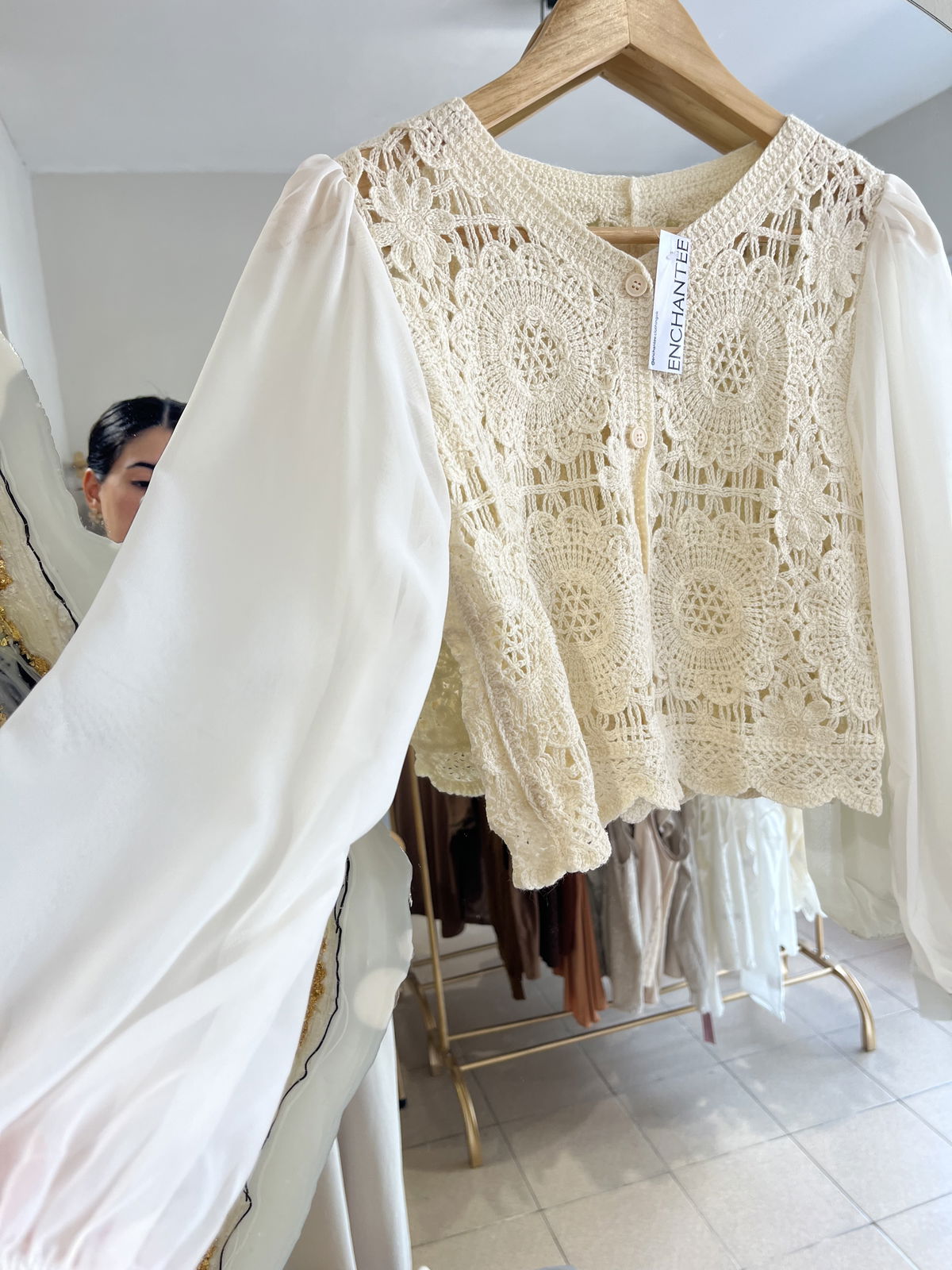 BLUSA DE CROCHET CON MANGAS DE GASA