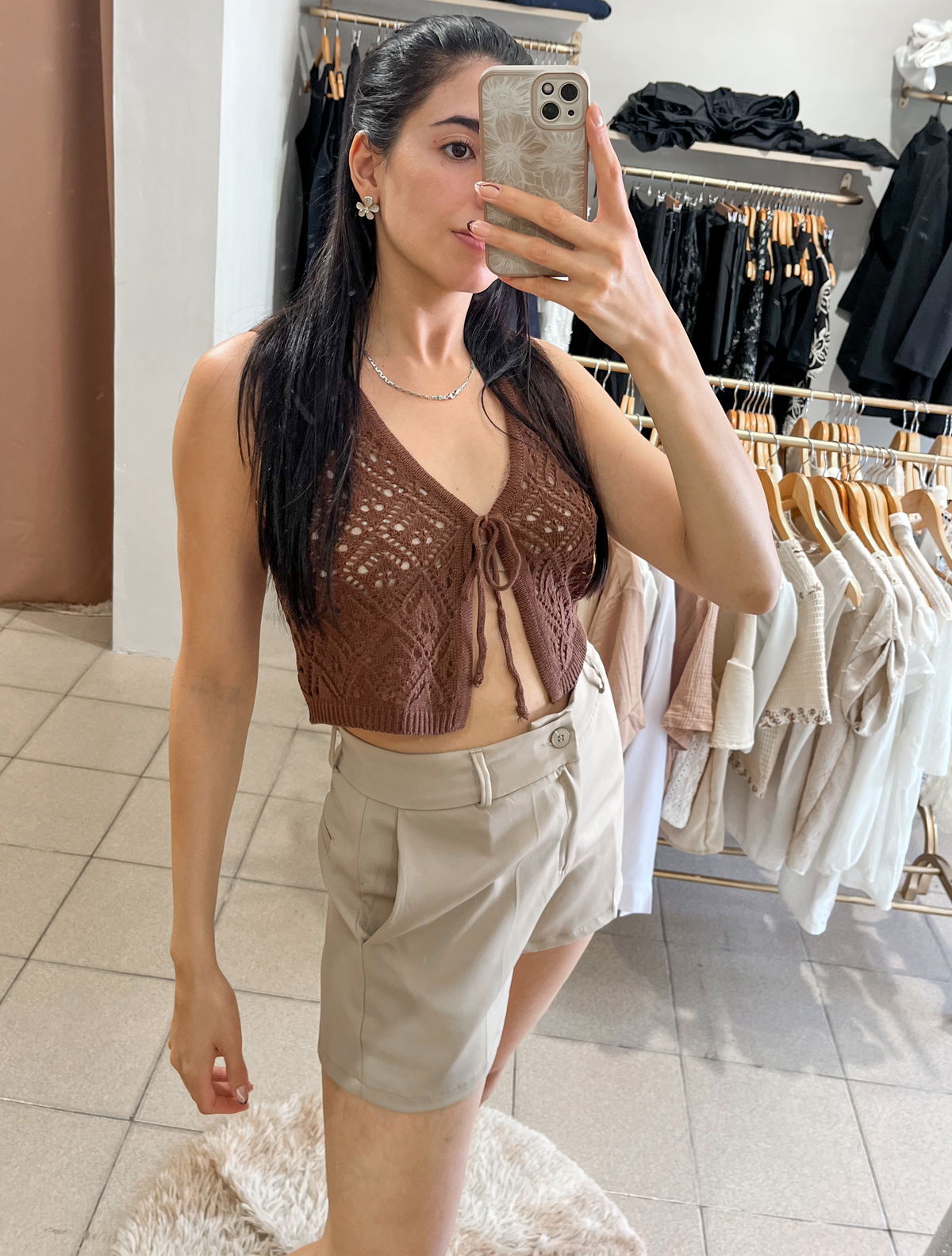 Meddias aproximadas: Ancho de hombros: 36cm Contorno de busto: 88cm (atado al máx) Largo total: 43cm